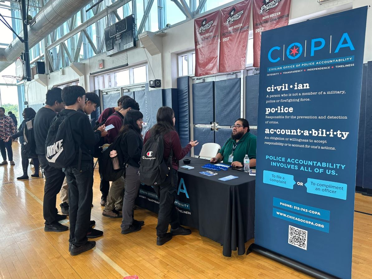 COPA had a great time in the Archer Heights community attending Garcia High School Resource Fair. At this outreach event COPA was able to set up a resource table and share its agency role in police misconduct with students and staff at this school.