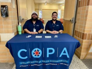 COPA had a great time at the Chicago Public Library, Humboldt Park Branch. The Humboldt Park branch has ongoing activities and groups accessible to the entire community including a afterschool activities, several story times, and adult creative hours. COPA was able to set up a resource table and give out information on our role in police oversight.